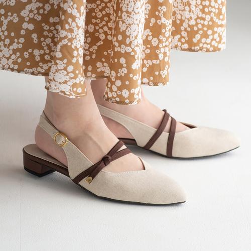 【ひんやりパンプス】ノットリボンストラップバックバンドパンプス【接触冷感】【日本製】