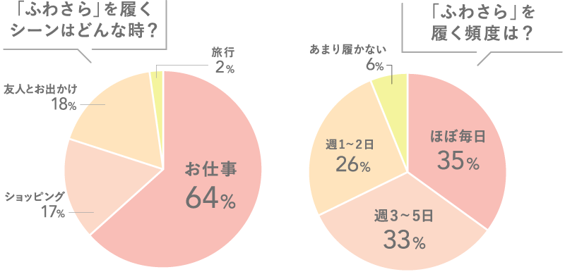 足が小さい・大きいなどサイズのお悩みのお客様にも、是非「ふわさら」を履いてほしいという思いから、サイズレンジを21.5cmから25.5cmに拡大して展開しております。