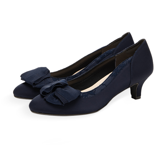 キラリと輝くミニビジューをプラスした、上品なターバンリボンがポイントのフェミニンパンプス。